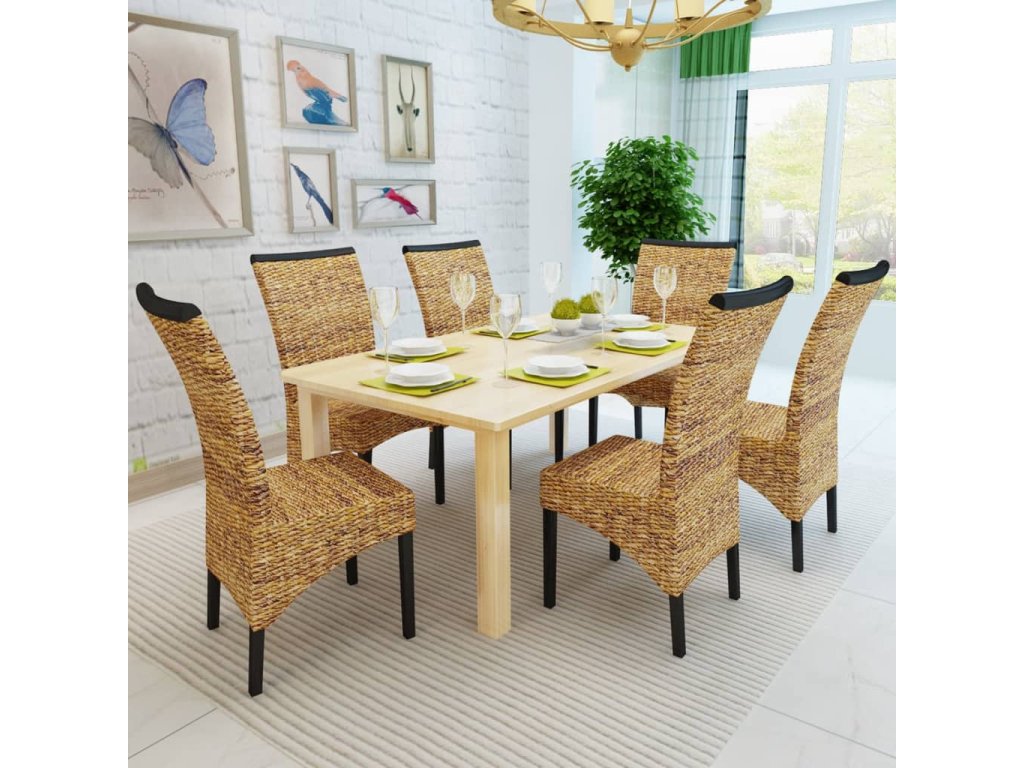 Toto je sada 6 vysoce kvalitních ručně vyplétaných abakových židlí. Díky svému manilskému stylu budou tyto abakou vyplétané židle skvělým doplňkem do vašeho interiéru.