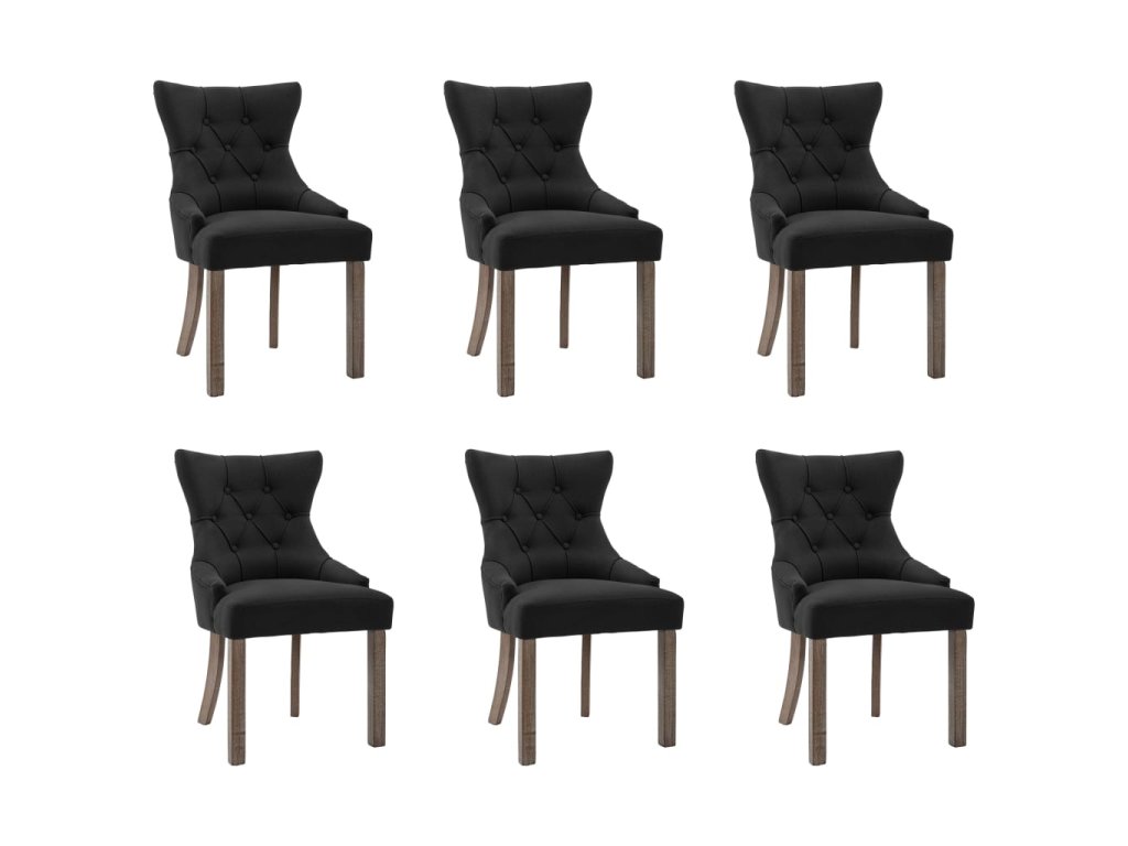 Design s krásnými knoflíky na opěradle těchto jídelních židlí je velmi atraktivní. Kuchyňské židle jsou čalouněné sametem, takže jsou měkké a příjemně se na nich sedí. Jejich silně polstrované sedáky a zaoblená opěradla vám zajistí optimální pohodlí. Nohy z kaučukovníkového dřeva zase přispívají k lepší stabilitě a zaručují židlím výtečnou odolnost.