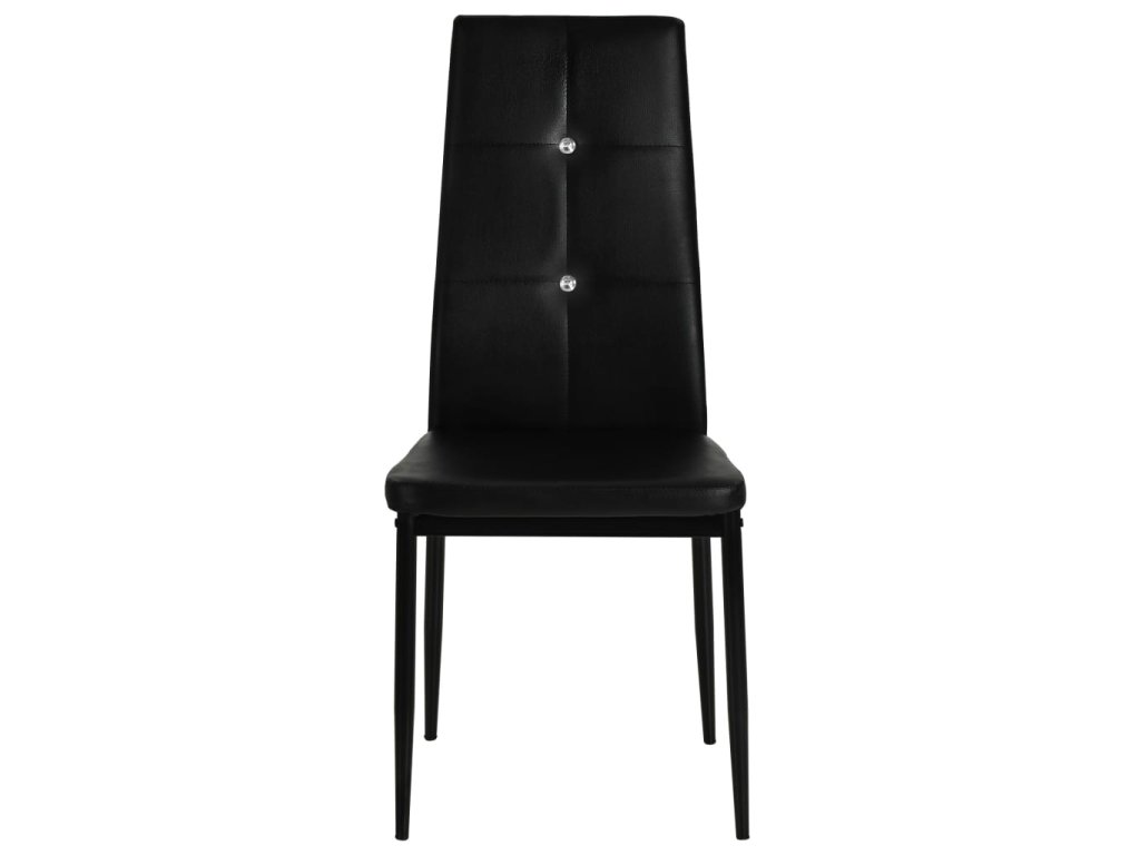 Židle disponuje dřevěným rámem s ocelovými nohami a polstrovaným sedákem s čalouněním z umělé kůže. Ergonomicky tvarované opěradlo je zdobené dvojicí krystalů, jež židli propůjčují vytříbený vzhled. Montáž židlí je snadná.