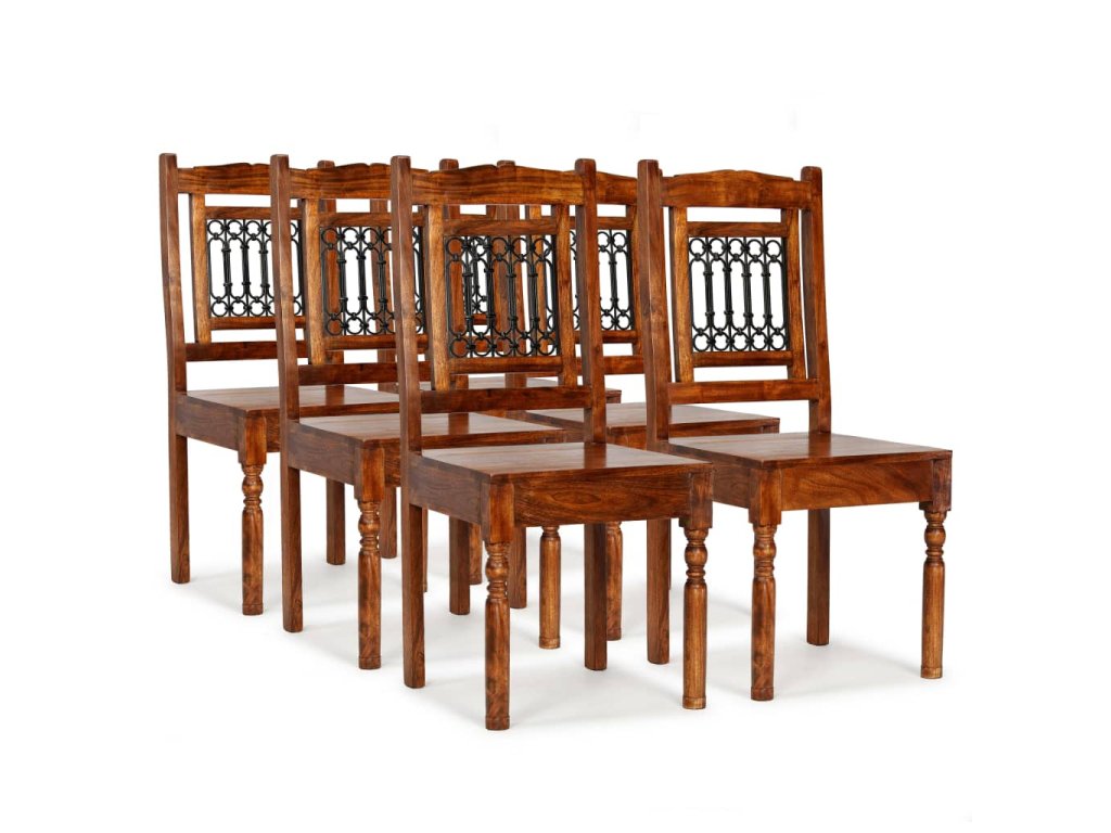 Tato klasicky navržená sada 6 dřevěných jídelních židlí s krásnými dekorativními litinovými detaily vnese do vaší domácnosti dotek elegance!