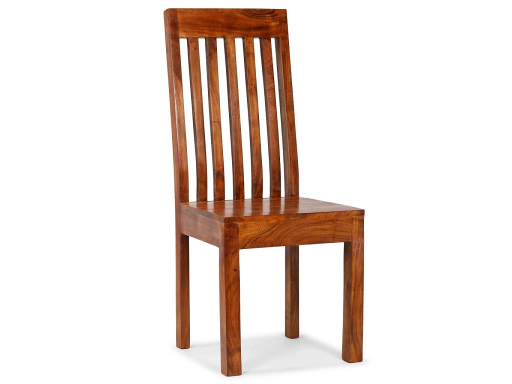 Židle jsou vyrobeny z masivního akáciového dřeva. Akácie je odolné tropické tvrdé dřevo. Tyto židle jsou celé ručně vyráběné a krásná kresba dřeva propůjčuje každému kusu nábytku jeho jedinečný a od všech ostatních lehce odlišný vzhled. Jídelní židle se snadno čistí vlhkým hadříkem. Snadno se sestavuje.