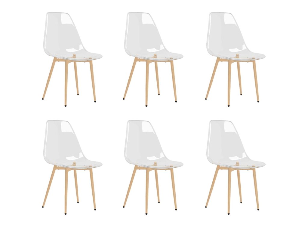 Jídelní židle má průhledný sedák s ladnými liniemi, což jí dodává speciální vzhled. Židle jsou vyrobené z PET, takže se snadno čistí. Kovové nohy jim navíc zajišťují mimořádnou odolnost. Kuchyňské židle mají ergonomicky zaoblené opěradlo, abyste si mohli při sezení užívat maximální pohodlí. Krytky na nohy chrání vaši podlahu před poškrábáním a zároveň přispívají k lepší stabilitě.