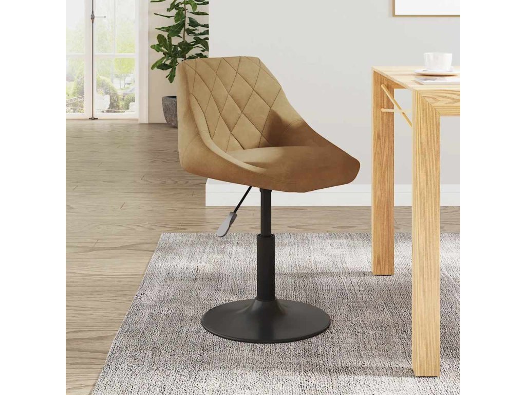 Židle je čalouněná měkkým sametem, který je příjemný na dotek, a nabízí tedy optimální komfort. Ocelový rám s černým práškovým nástřikem zaručuje mimořádnou odolnost. Výšku židle snadno upravíte pomocí mechanismu s plynovým pístem. Jídelní židle představuje dokonalý doplněk do každého funkčního baru či jídelny. Židle se navíc otáčí o 360 stupňů, což jí dodává skvělou flexibilitu.