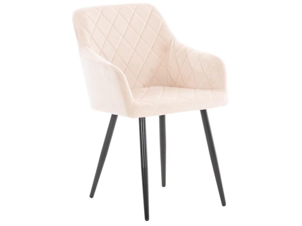 Jídelní židle ShilaJídelní židle Shila je pohodlné a stylové sedadlo pro každodenní použití. Židle má velkoryse čalouněný sedák, takže se na ní pohodlně sedí i delší dobu. Pohodlí při sezení doplňuje opěradlo a područky. Kovový rám se čtyřmi nohami slibuje stabilitu a bezpečné postavení. Tato jídelní židle dodává moderní nádech a je skvělým doplňkem každého obývacího pokoje. Pod nohami jsou také chrániče podlahy, které zabraňují jejímu poškrábání. Jídelní židle je k dispozici s možností výběru sametového nebo látkového čalounění.