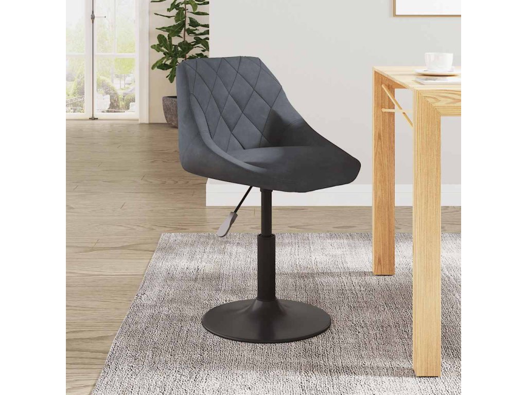 Židle je čalouněná měkkým sametem, který je příjemný na dotek, a nabízí tedy optimální komfort. Ocelový rám s černým práškovým nástřikem zaručuje mimořádnou odolnost. Výšku židle snadno upravíte pomocí mechanismu s plynovým pístem. Jídelní židle představuje dokonalý doplněk do každého funkčního baru či jídelny. Židle se navíc otáčí o 360 stupňů, což jí dodává skvělou flexibilitu.