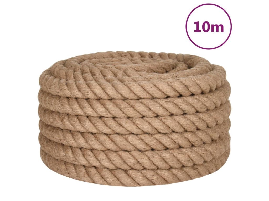 - Přírodní materiál: Toto jutové lano je pevně spletené ze 3 jemnějších pramenů 100% přírodní juty, je silné, pružné, odolné vůči povětrnostním vlivům a bezpečné.