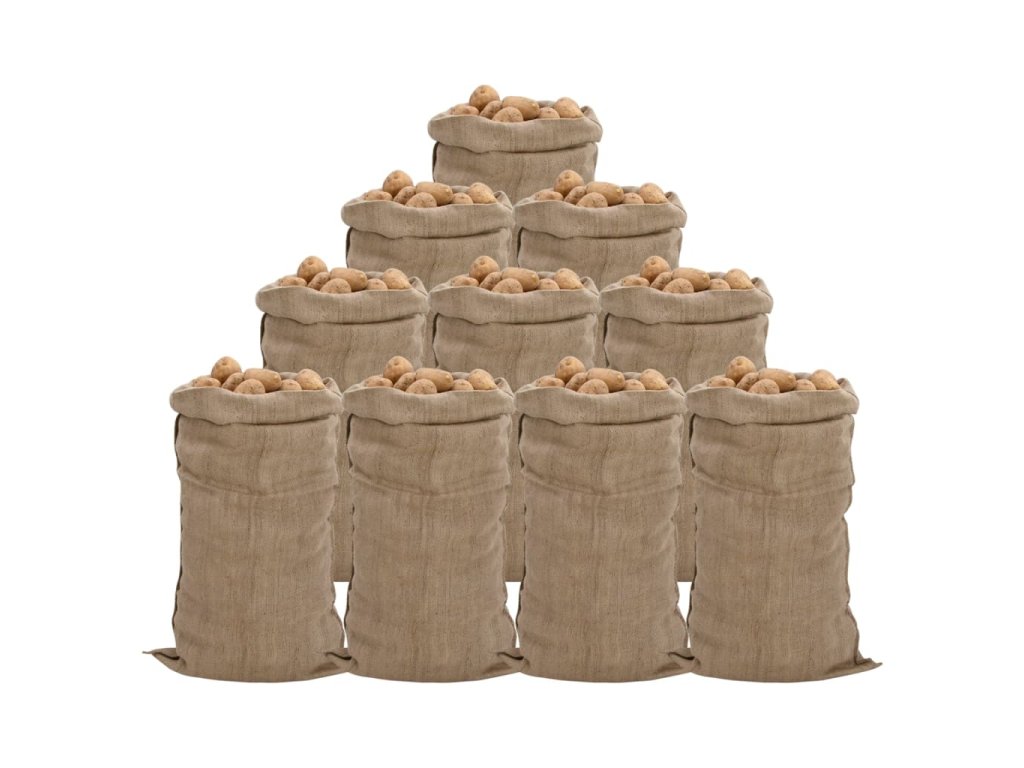 - Víceúčelové: Tyto jutové pytle jsou vhodné pro skladování potravin, jako je kořenová zelenina, ořechy a ovoce, a pro přepravu špičatých a hranatých materiálů. Jsou také ideální pro ochranu rostlin před chladným počasím. Rustikální vzhled těchto jutových pytlů je také činí ideálními dekoracemi do vašeho obytného prostoru.