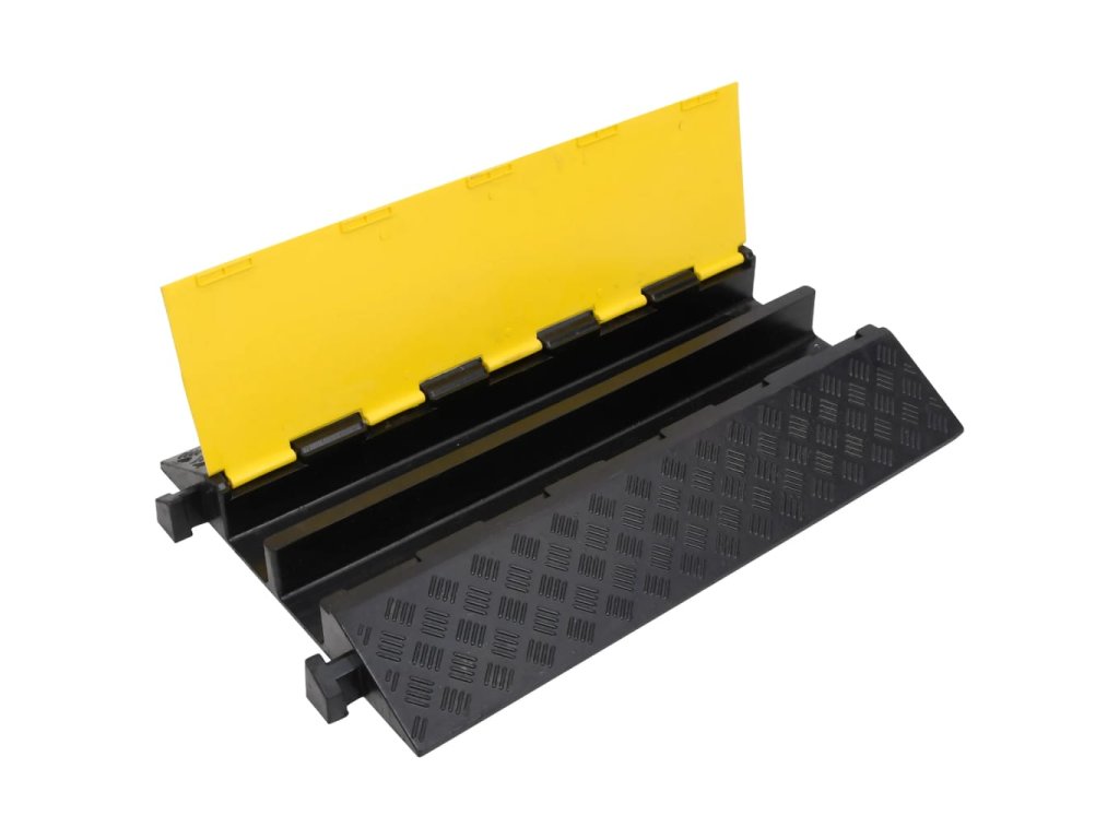 Tento kabelový ochranný most se 2 kanálky se výborně hodí k zakrytí a ochraně drátů, kabelů, hadic, trubek nebo rour na pracovištích s vysokým provozem.
