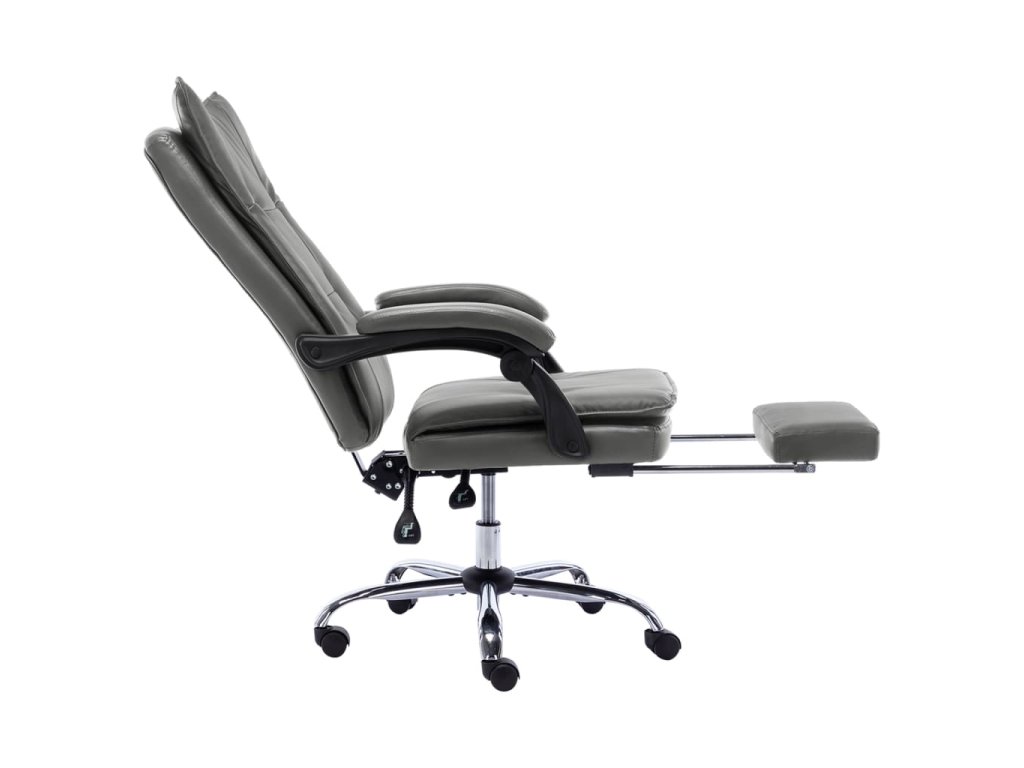 Židle má vysoké opěradlo, zaoblené područky, podnožku a hustě polstrovaný sedák, aby se vám na ní dobře sedělo i během dlouhých pracovních dnů. Její výšku lze nastavit, takže ji bez problémů přizpůsobíte výšce stolu, a dosáhnete tak maximálního pohodlí i zdravé pozice páteře. Polohovací křeslo je vybavené nylonovými pojezdovými kolečky pro snadný pohyb. Navíc se dá sklopit do úhlu 95° až 150°, což vám umožní najít si tu nejpříjemnější polohu k odpočinku.