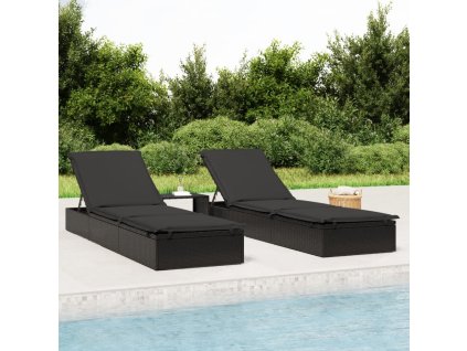 Zahradní lehátko 1 ks se stolkem šedé polyratan 319633