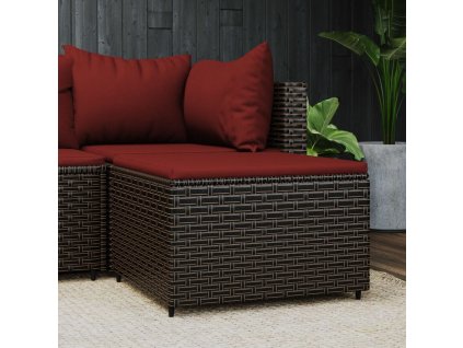 Zahradní podnožka s poduškou hnědá 70 x 70 x 30 cm polyratan 317558