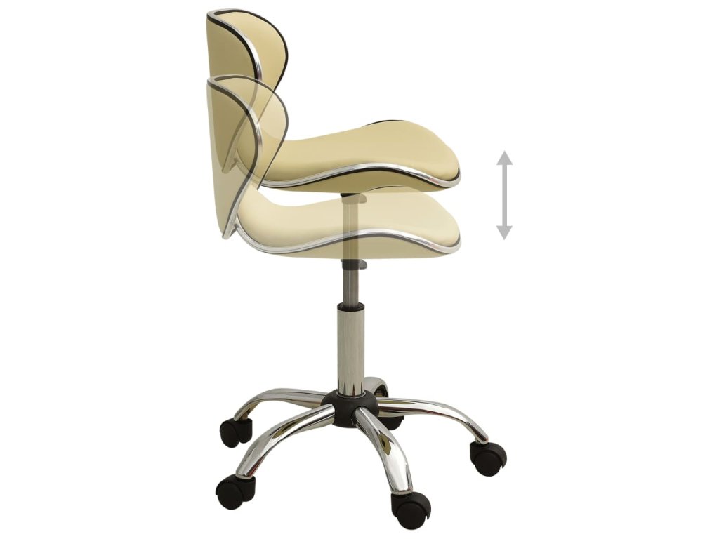 Židle je čalouněná umělou kůží, která se snadno čistí, a nabízí maximální pohodlí při sezení. Navíc se otáčí o 360 stupňů a její výšku lze nastavit, takže se přizpůsobí vašim momentálním potřebám. Pět pojezdových koleček zajišťuje výtečnou mobilitu.