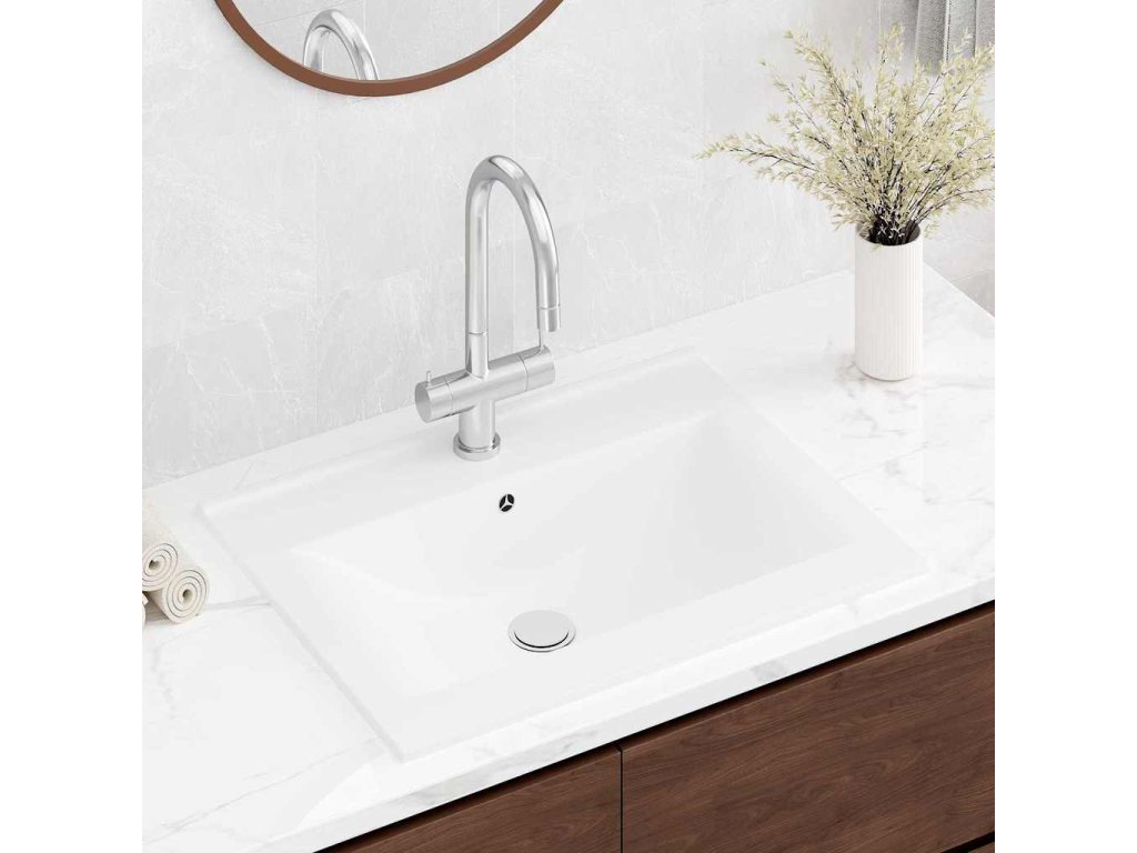 Keramické umyvadlo obdélníkové bílé s otvorem na baterii 60 x 46 cm 140686