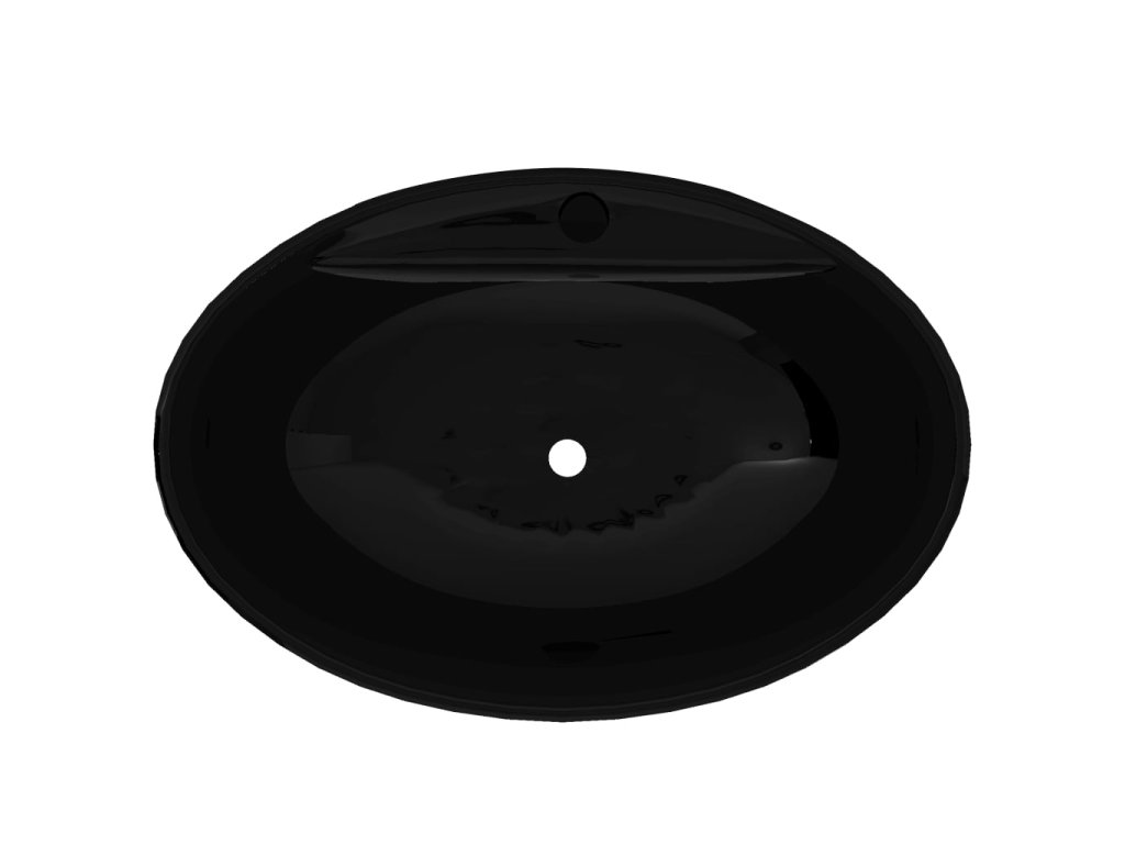 Keramické umyvadlo s otvorem na baterii a přepadem, černé oválné 141921