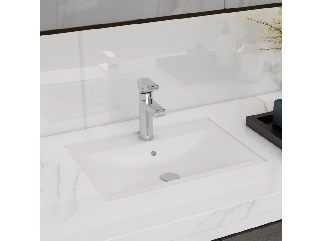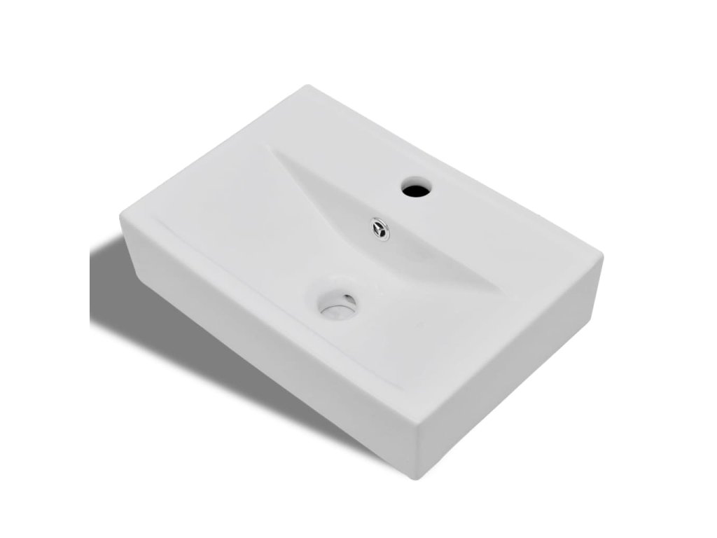 Keramické umyvadlo s otvorem na baterii a přepadem bílé obdélníkové 141932