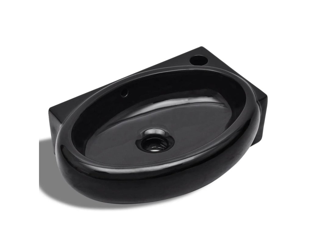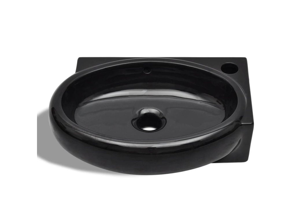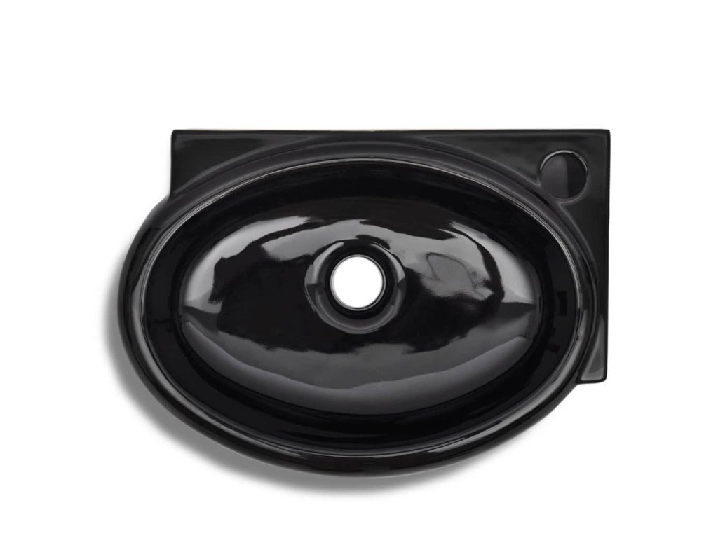 Keramické umyvadlo s otvorem na baterii a přepadem černé kulaté 141925