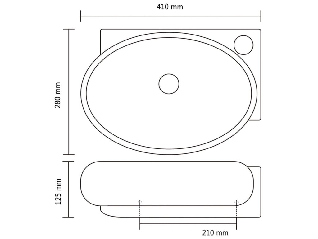 Toto designové keramické umyvadlo není jen praktická nádoba pro každodenní použití, ale i dekorace pro vaši domácnost. Určitě se bude hodit do každého stylu zařízení. Navíc je velmi snadné toto umyvadlo čistit. Umyvadlo je vybavené přepadem, aby se předešlo přetečení. Je rovněž opatřeno otvorem na baterii o průměru 3,5 cm, abyste mohli nainstalovat kohoutek. Odtok má průměr 4,5 cm.