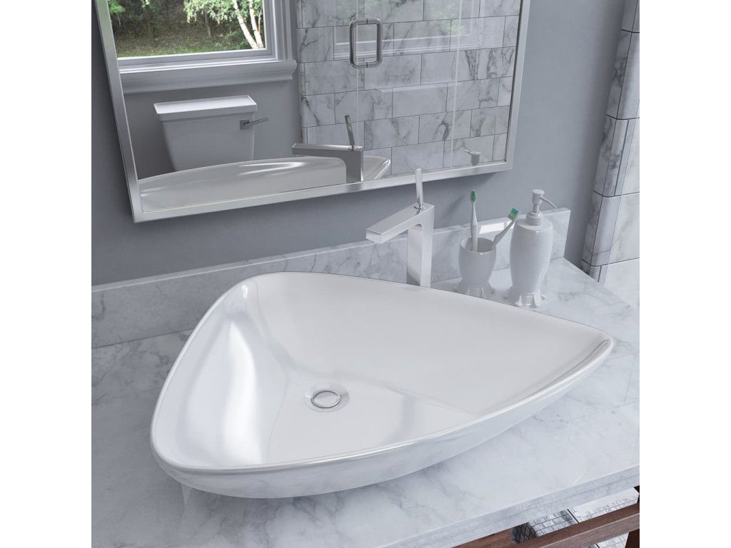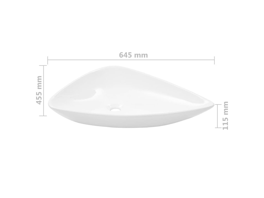 Keramické umyvadlo trojúhelníkové bílé 645 x 455 x 115 mm 142997