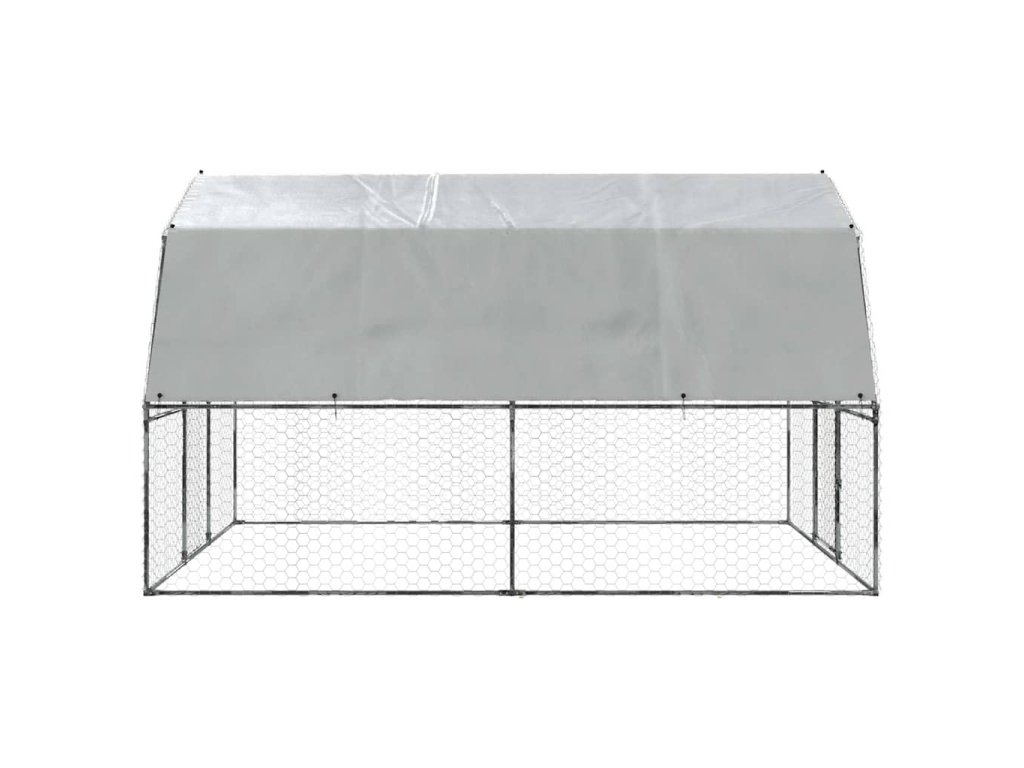 Klec pro drůbež se střechou a dvířky stříbrná ocel 3294911