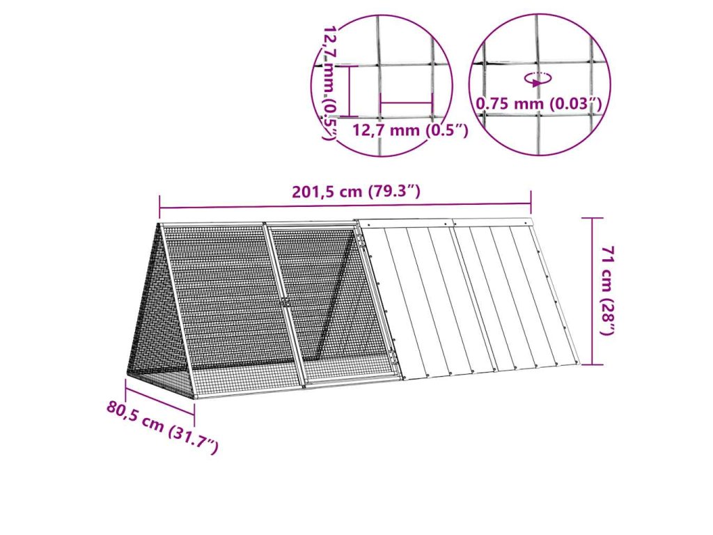 Klec pro králíky antracitová 201,5x80,5x71 cm pozinkovaná ocel 171536