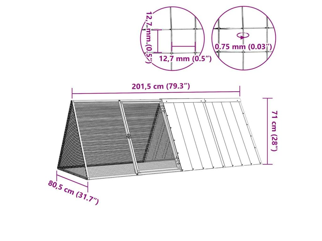 Klec pro králíky šedá 201,5 x 80,5 x 71 cm pozinkovaná ocel 171538