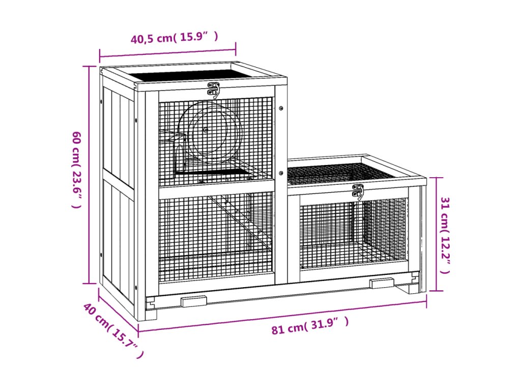 Klec pro křečky 81 x 40 x 60 cm masivní jedlové dřevo 172384