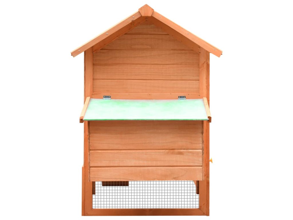 Pletivová konstrukce z železných drátů vám umožní kuřata neustále sledovat a zajistí v kleci volné proudění čerstvého vzduchu. Kurník tvoří vysoce kvalitní dřevěný rám, který vám bude sloužit po dlouhá léta. Zelená střecha chrání obyvatele před deštěm a v útulném domečku se krásně vyspí. Ze spodního do horního patra vede rampa, po níž mohou zvířata snadno vyšplhat nahoru. Výsuvné dno klece usnadňuje její čištění. Dvířka lze jednoduše zavřít a zajistit zasouvacími západkami.