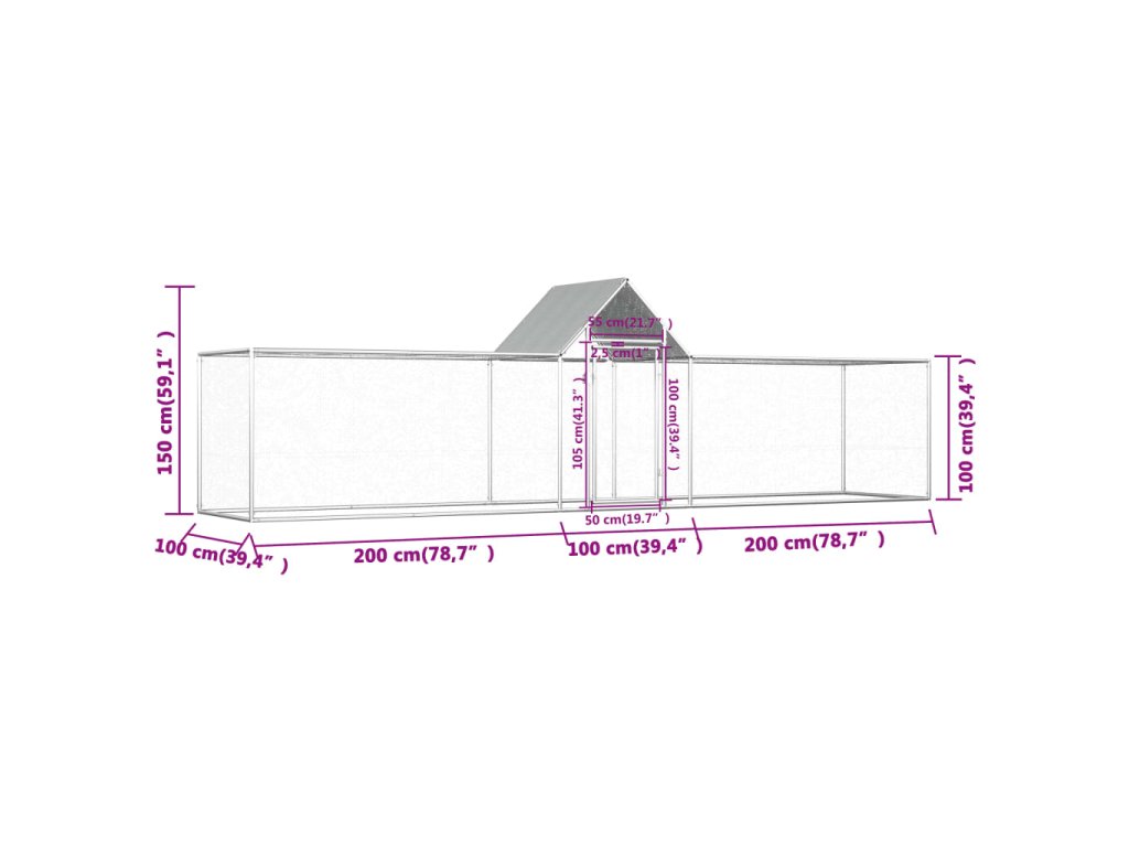 Klec pro kuřata 5 x 1 x 1,5 m pozinkovaná ocel 144560