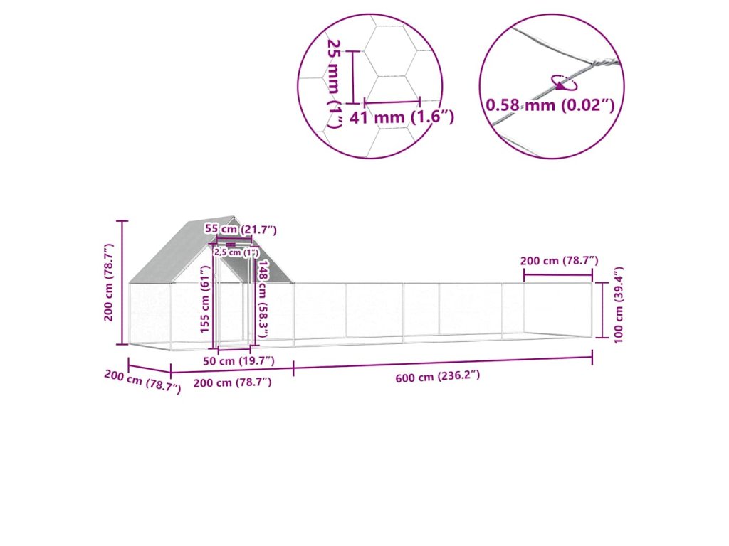 Klec pro kuřata 8 x 2 x 2 m pozinkovaná ocel 144558