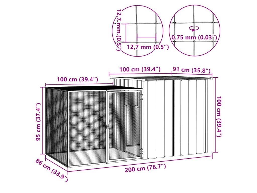 Klec pro kuřata antracitová 200 x 91 x 100 cm pozinkovaná ocel 171544