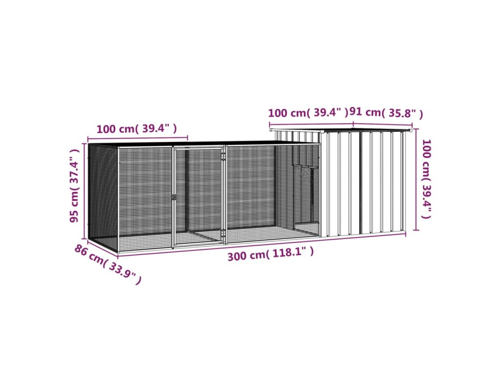 Klec pro kuřata antracitová 300 x 91 x 100 cm pozinkovaná ocel 3106452