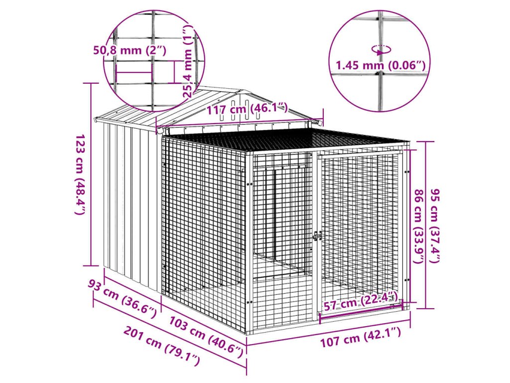 Klec pro kuřata s výběhem antracitová 117 x 201 x 123 cm pozinkovaná ocel 172353