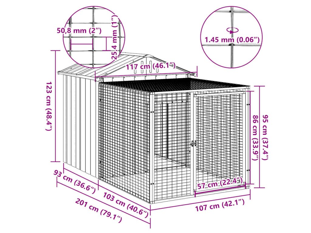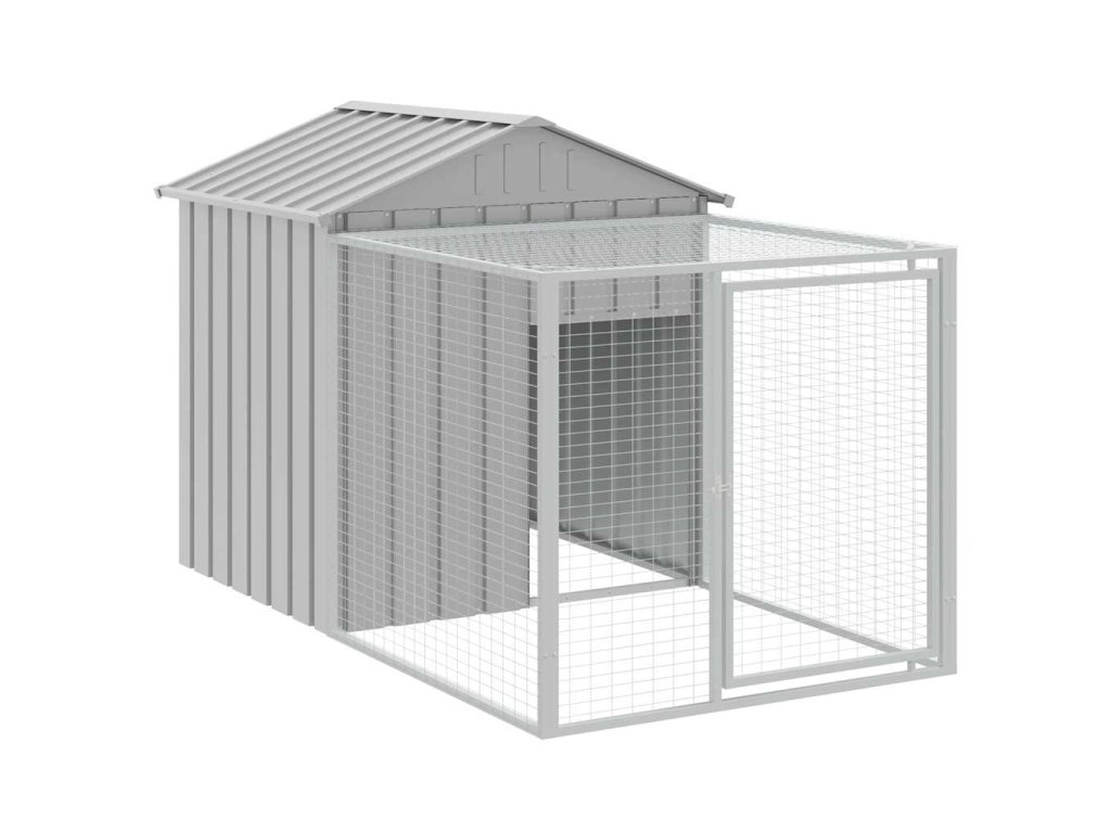 Klec pro kuřata s výběhem světle šedá 117 x 201 x 123 cm pozinkovaná ocel 172354