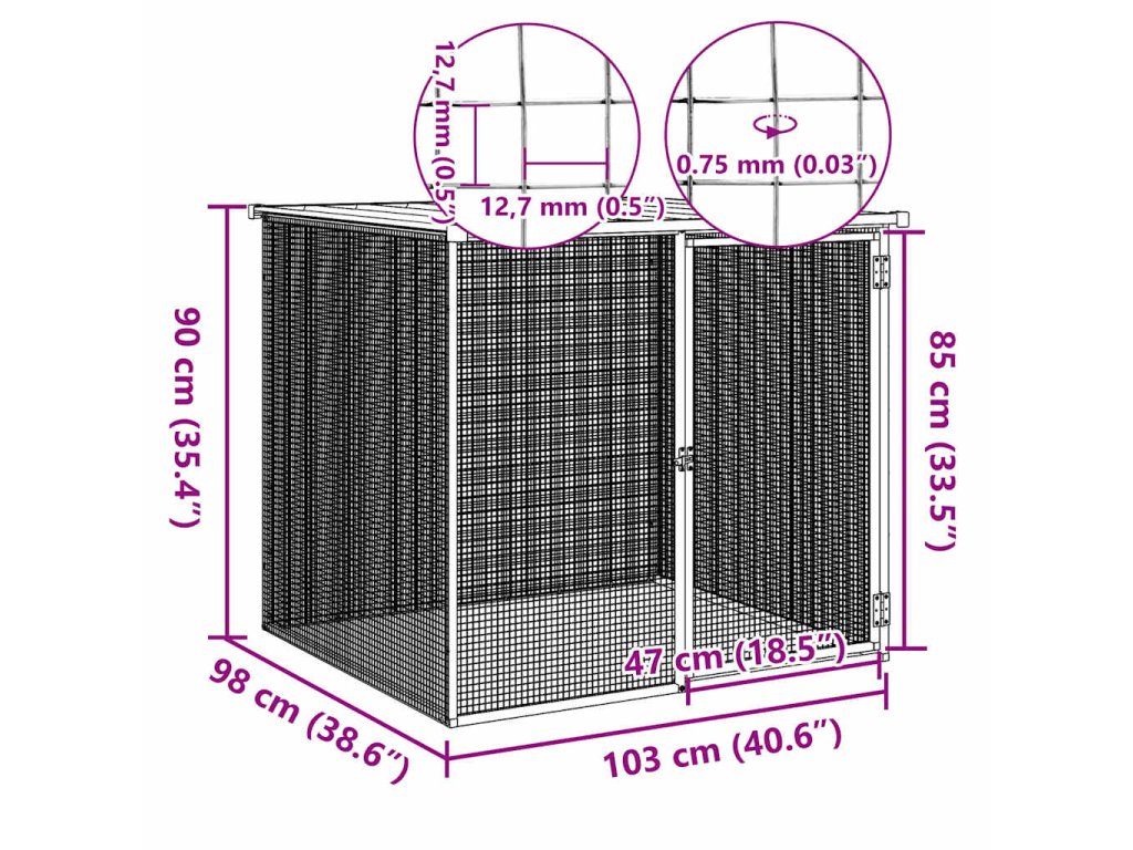 Klec pro kuřata se střechou světle šedá 103 x 98 x 90 cm ocel 172338