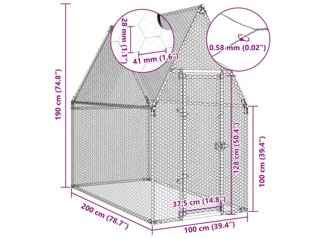 - Odolný a robustní rám: Klec je vyrobena z pozinkované oceli. Ocel je mimořádně tvrdý a pevný materiál. Zajišťuje pevnost a stabilitu. Pozinkování poskytuje lepší ochranu proti korozi a je užitečné pro výrobky, které se budou používat venku i v drsném prostředí.