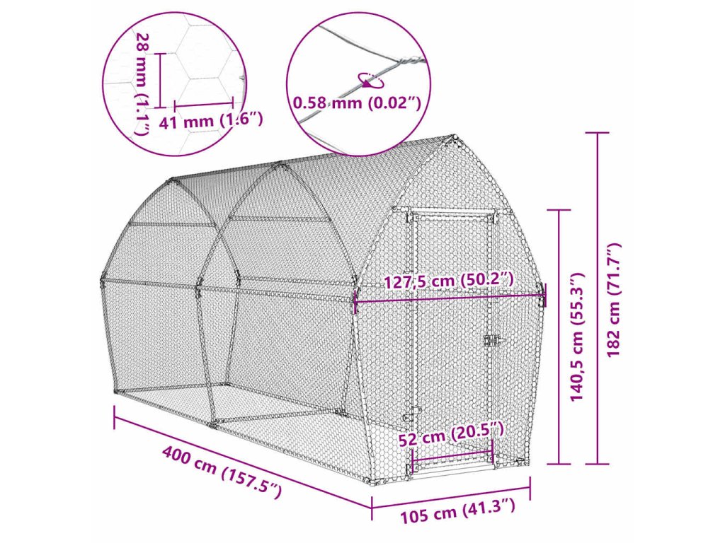 Klec pro kuřata stříbrná 400 x 105 x 182 cm pozinkovaná ocel 172556