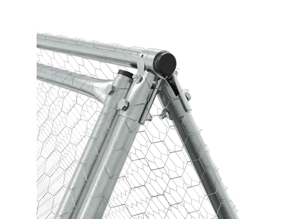 - Odolný a robustní rám: Klec je vyrobena z pozinkované oceli. Ocel je mimořádně tvrdý a pevný materiál. Zajišťuje pevnost a stabilitu. Pozinkování poskytuje lepší ochranu proti korozi a je užitečné pro výrobky, které se budou používat venku i v drsném prostředí.