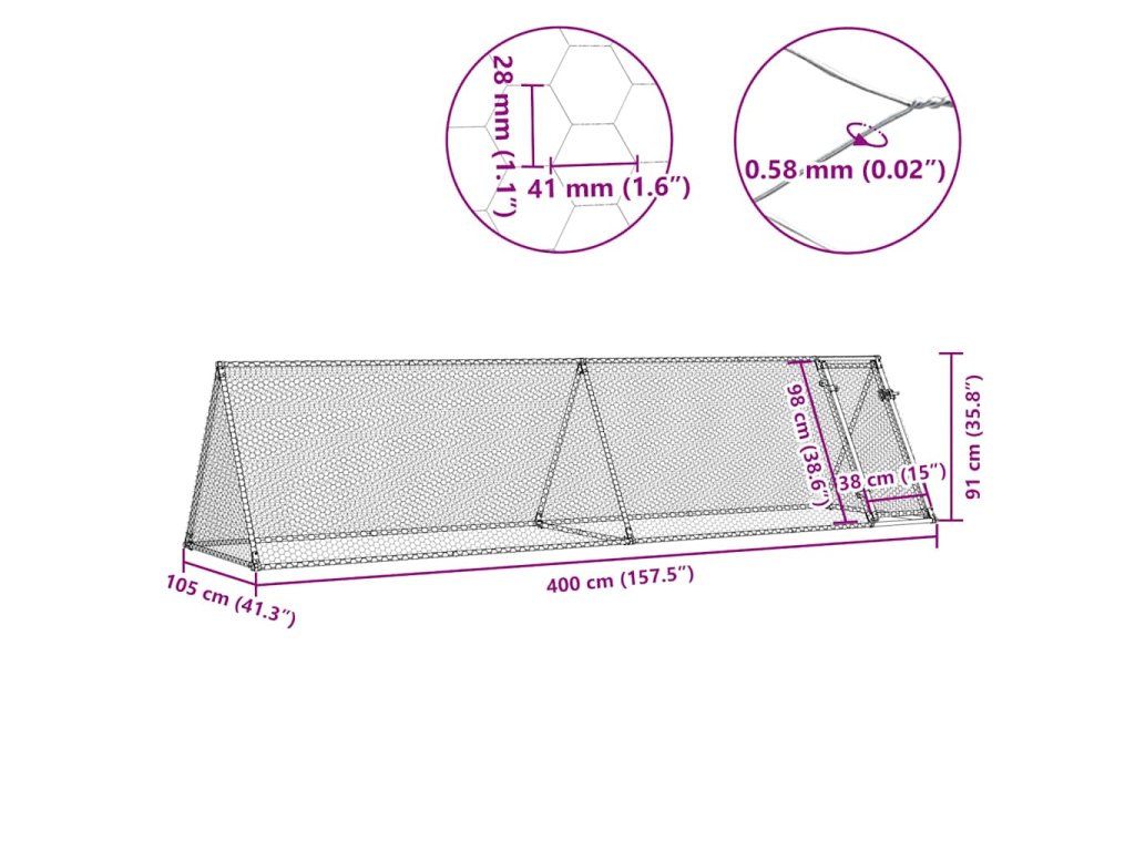 Klec pro kuřata stříbrná 400 x 105 x 91 cm pozinkovaná ocel 172558