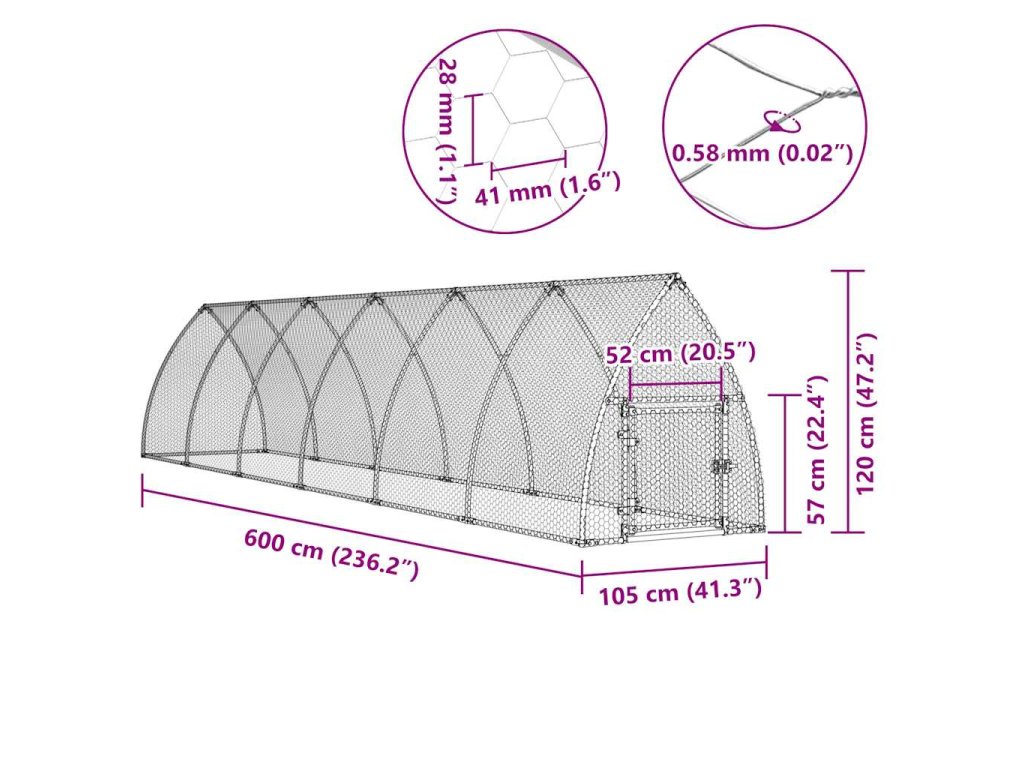 Klec pro kuřata stříbrná 600 x 105 x 120 cm pozinkovaná ocel 172554