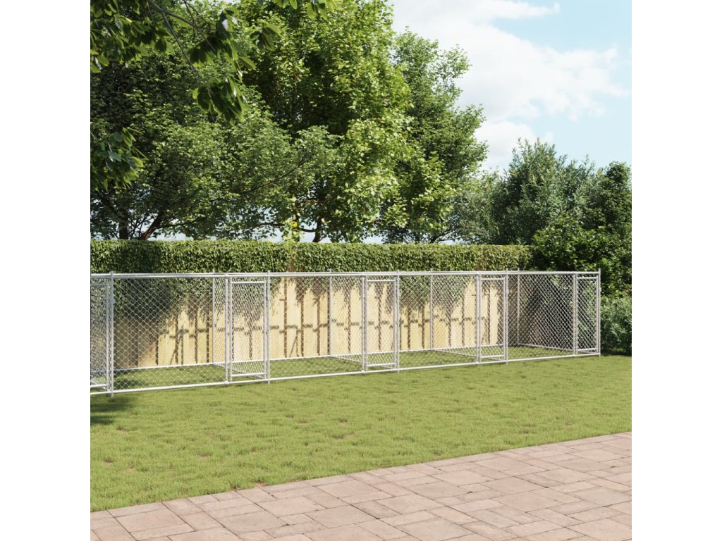 Klec pro psy s dvířky šedá 10 x 2 x 1,5 m pozinkovaná ocel 3209576
