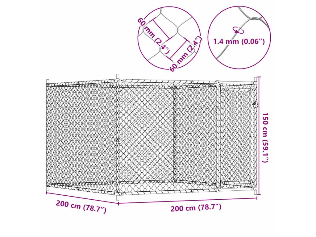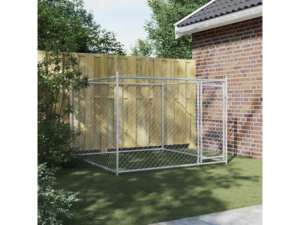 Klec pro psy s dvířky šedá 2 x 2 x 1,5 m pozinkovaná ocel 172562
