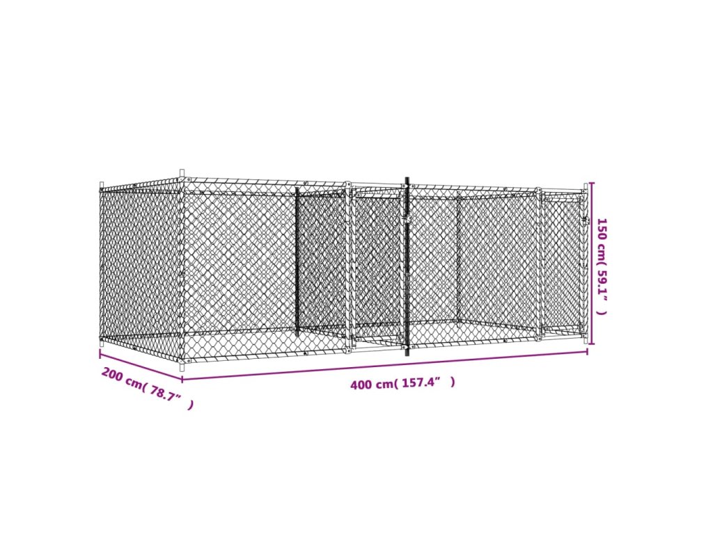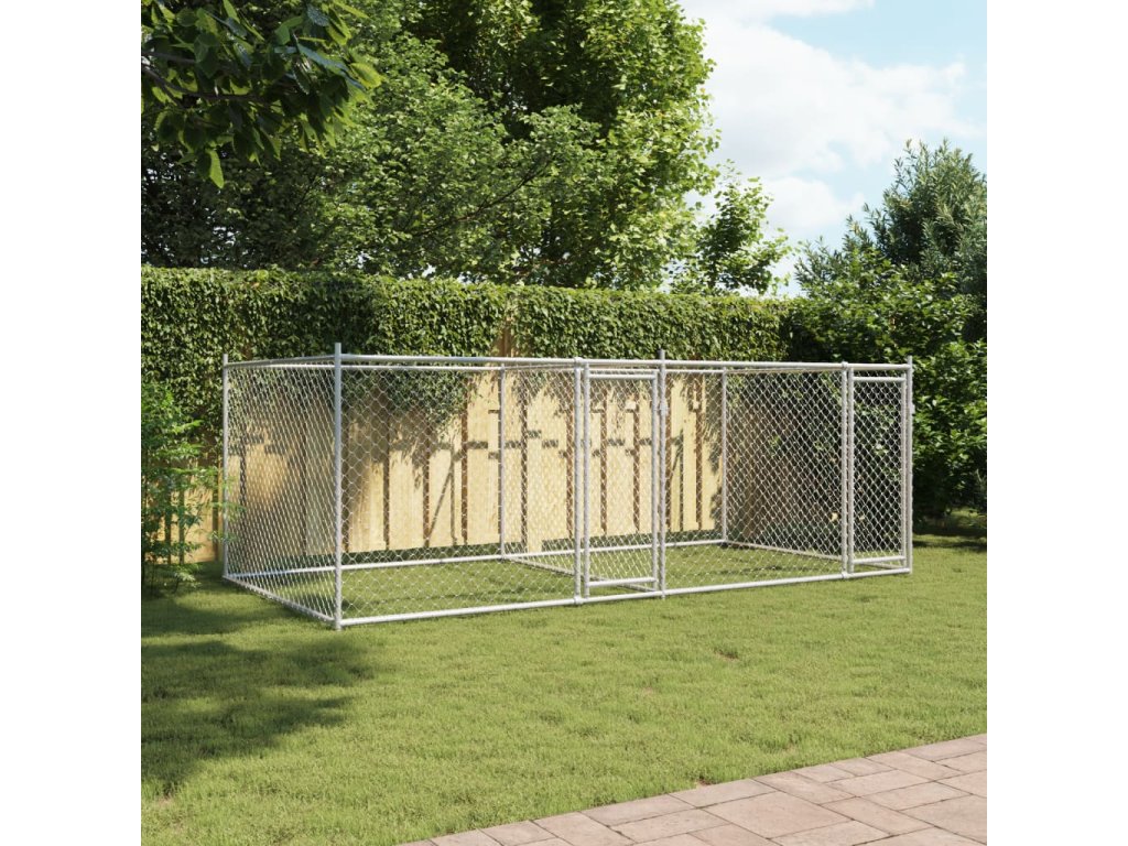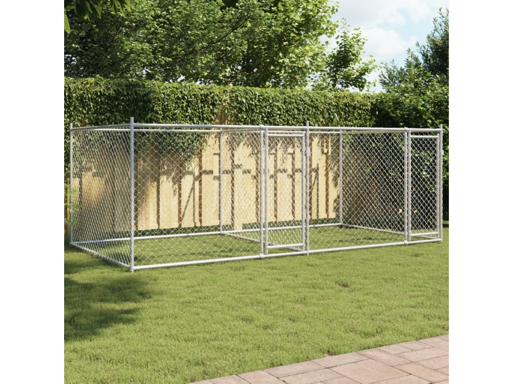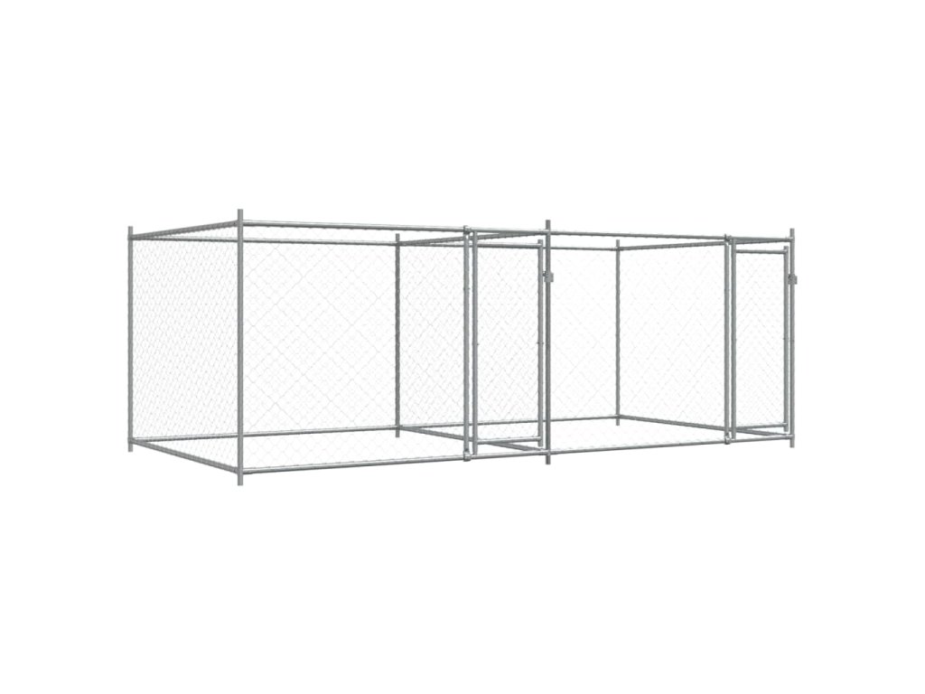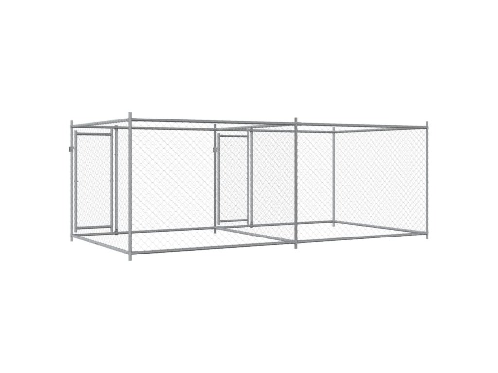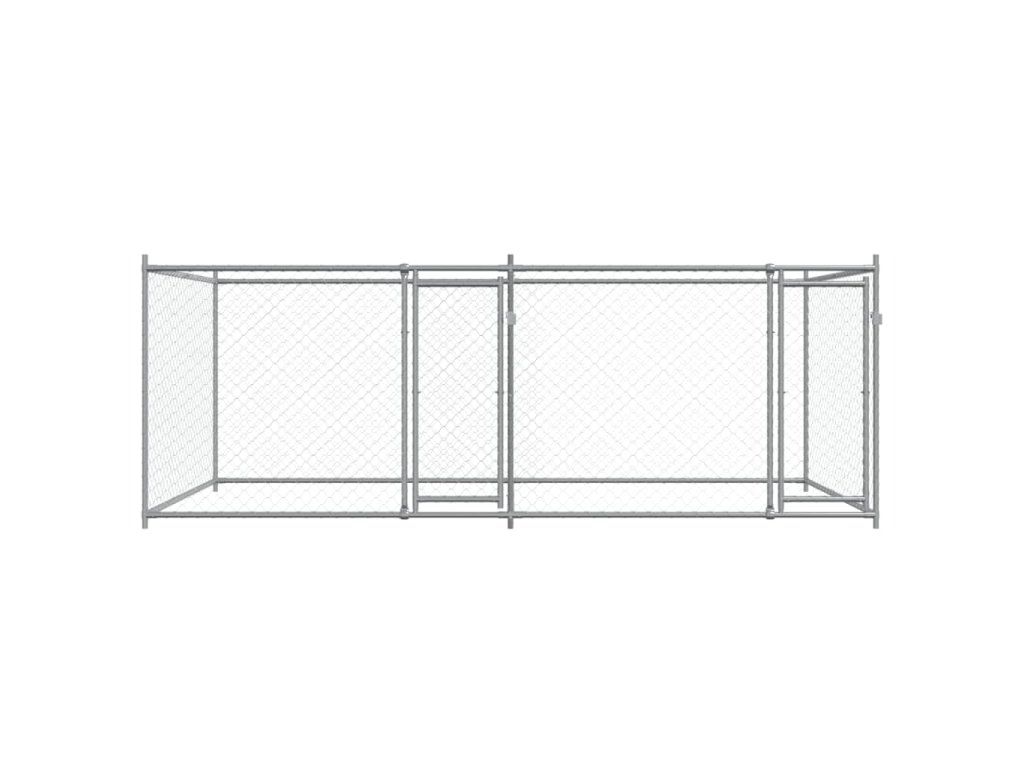 Klec pro psy s dvířky šedá 4 x 2 x 1,5 m pozinkovaná ocel 3209573