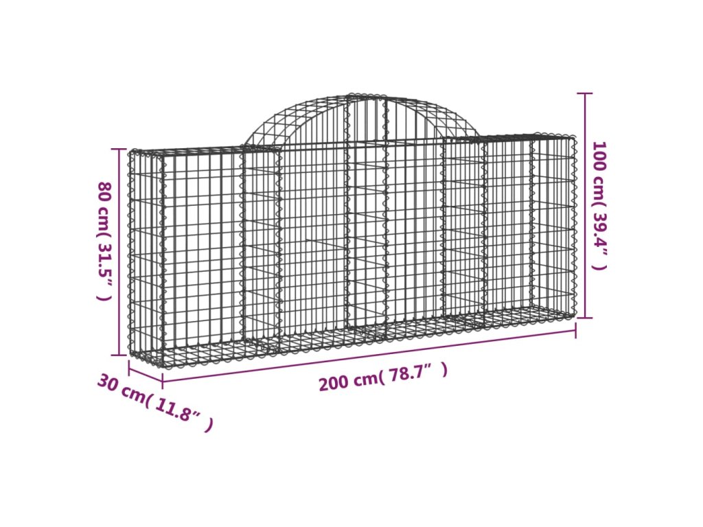 Klenuté gabionové koše 2 ks 200x30x80/100 cm pozinkované železo 3146089