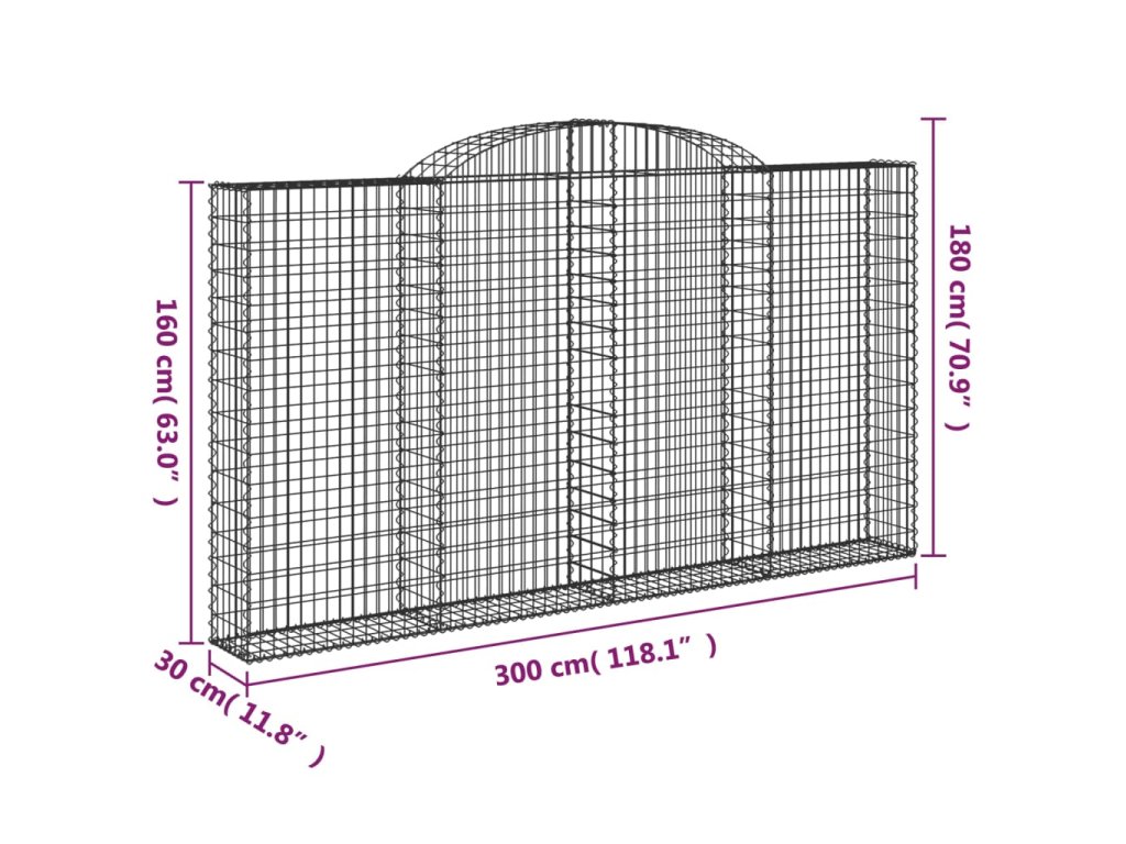 Klenuté gabionové koše 2 ks 300x30x160/180cm pozinkované železo 3146575
