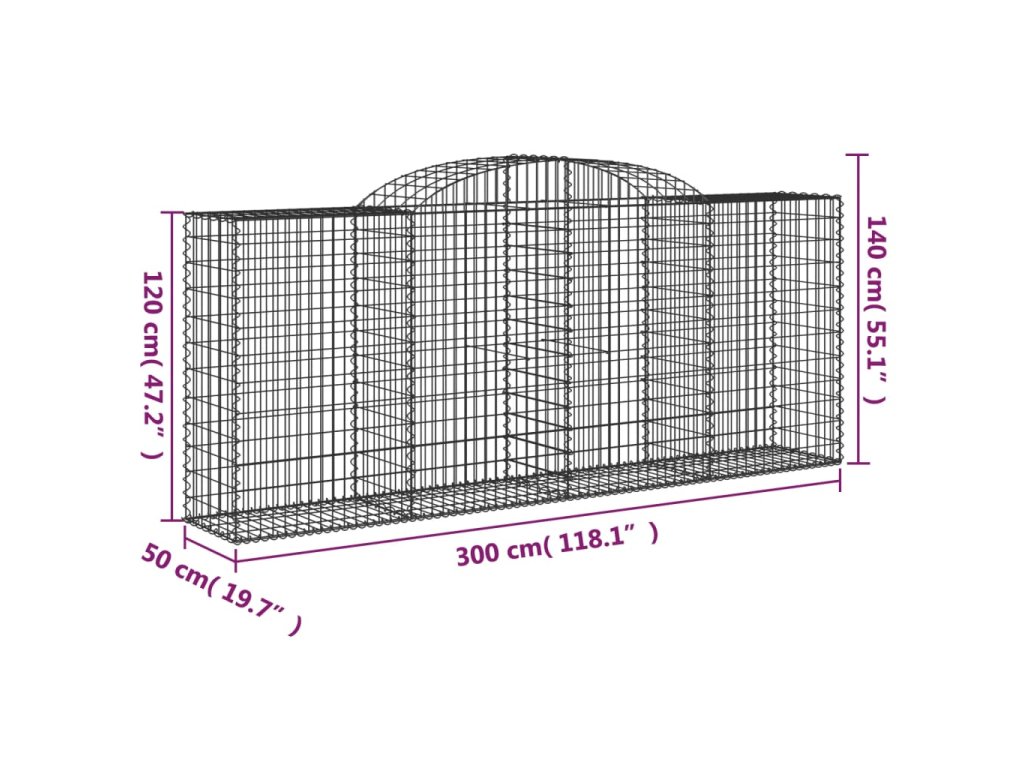 Klenuté gabionové koše 2 ks 300x50x120/140cm pozinkované železo 3146719