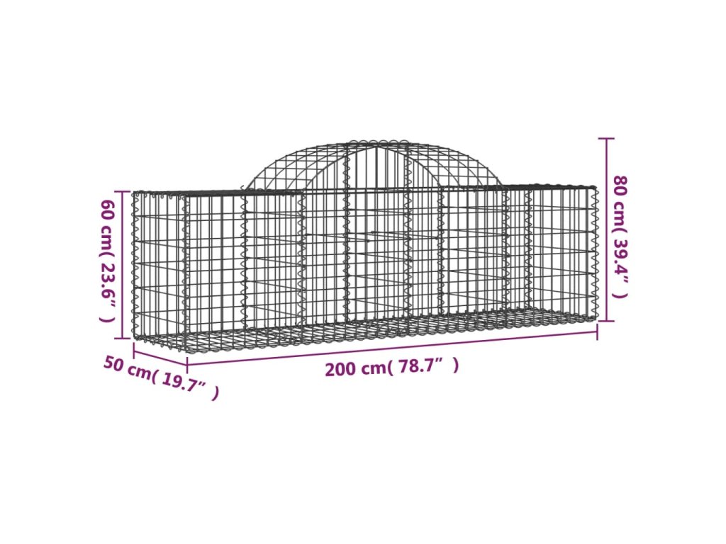 Klenuté gabionové koše 25 ks 200x50x60/80 cm pozinkované železo 3146294