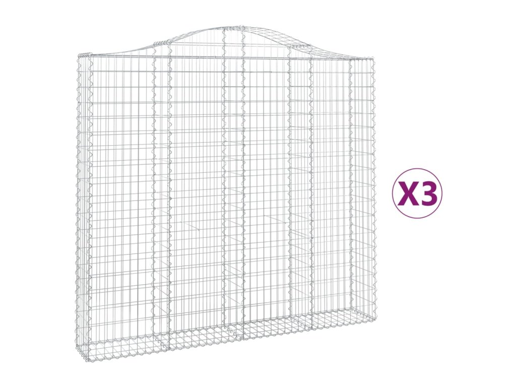 Klenuté gabionové koše 3 ks 200x30x180/200cm pozinkované železo 3145515