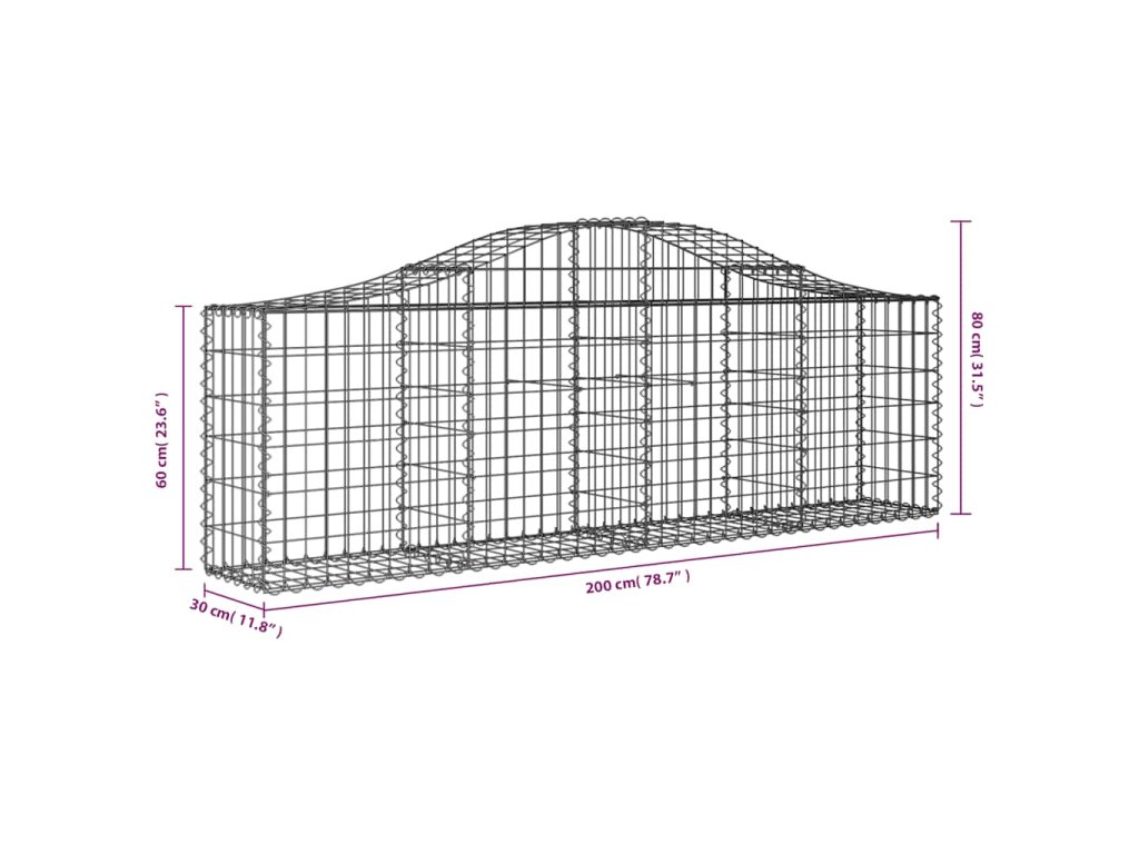 Klenuté gabionové koše 3 ks 200x30x60/80 cm pozinkované železo 3145389