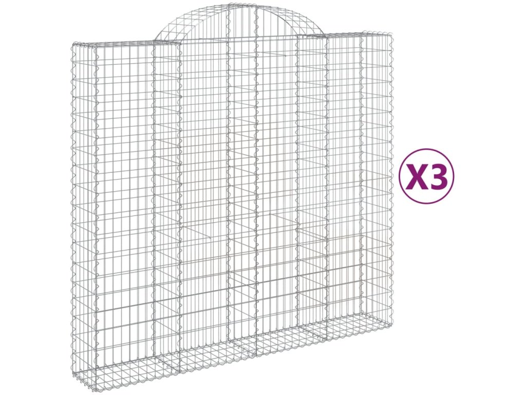 Klenuté gabionové koše 3 ks 200x50x180/200cm pozinkované železo 3146405