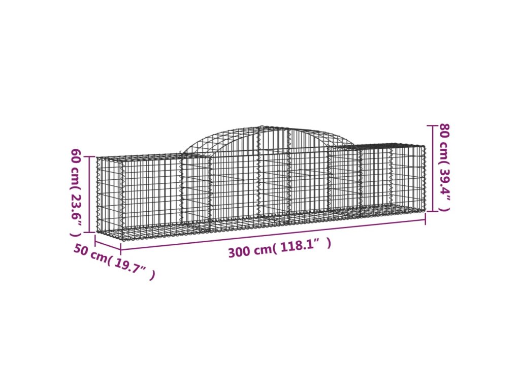 Klenuté gabionové koše 3 ks 300x50x60/80 cm pozinkované železo 3146666